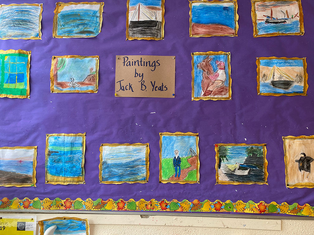 Lily continued to produce embroidered objects. She died on 6 January 1949 and is buried with her sister Elizabeth in the graveyard of Saint Nahi’s Church, Dundrum. Some of her embroideries include “Apple Trees”, “Cornfield with Poppies”, “The Stone Wall.” These and other items by Lily Yeats are now in the National Gallery of Ireland, Dublin.