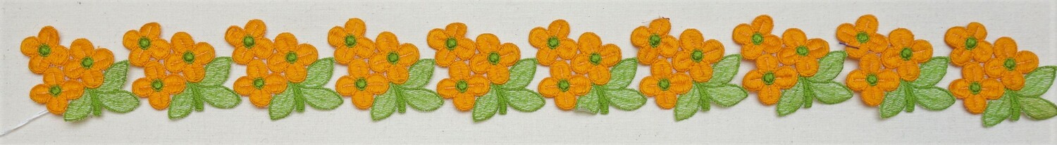 Front and back of a length of identical, machine embroidered posies that would have been separated and then added to a packet of cigarettes (1920s-1930s, the Netherlands; TRC 2021.2478a).