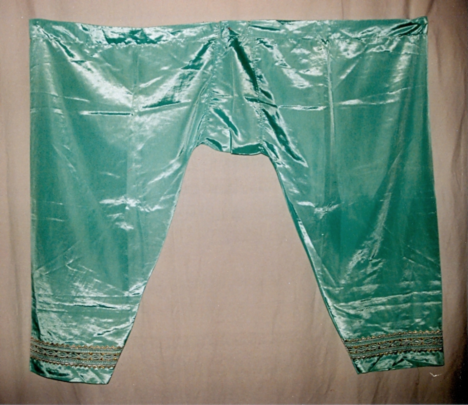 The town and district of Lamerd lies in Fars province, not far to the north of the Persian Gulf. Because of the nearby natural gas resources recently discovered, it is now at the centre of attention and economic development. However, it used to be just a small village near the southern port city of Bushire. Consequently, local clothing shows influences both from the Bandar region along the Persdian Gulf in the south, and from the nomads in the north. Women’s clothing includes the black (Sunni) headscarf worn by the Bandar women and Arabs, while the colourful dress with long slits on both sides is similar to that worn by the women of the nomadic tribes. The very distinctive garment of the Lamerd area is their long skirt with special decoration on the lower part.