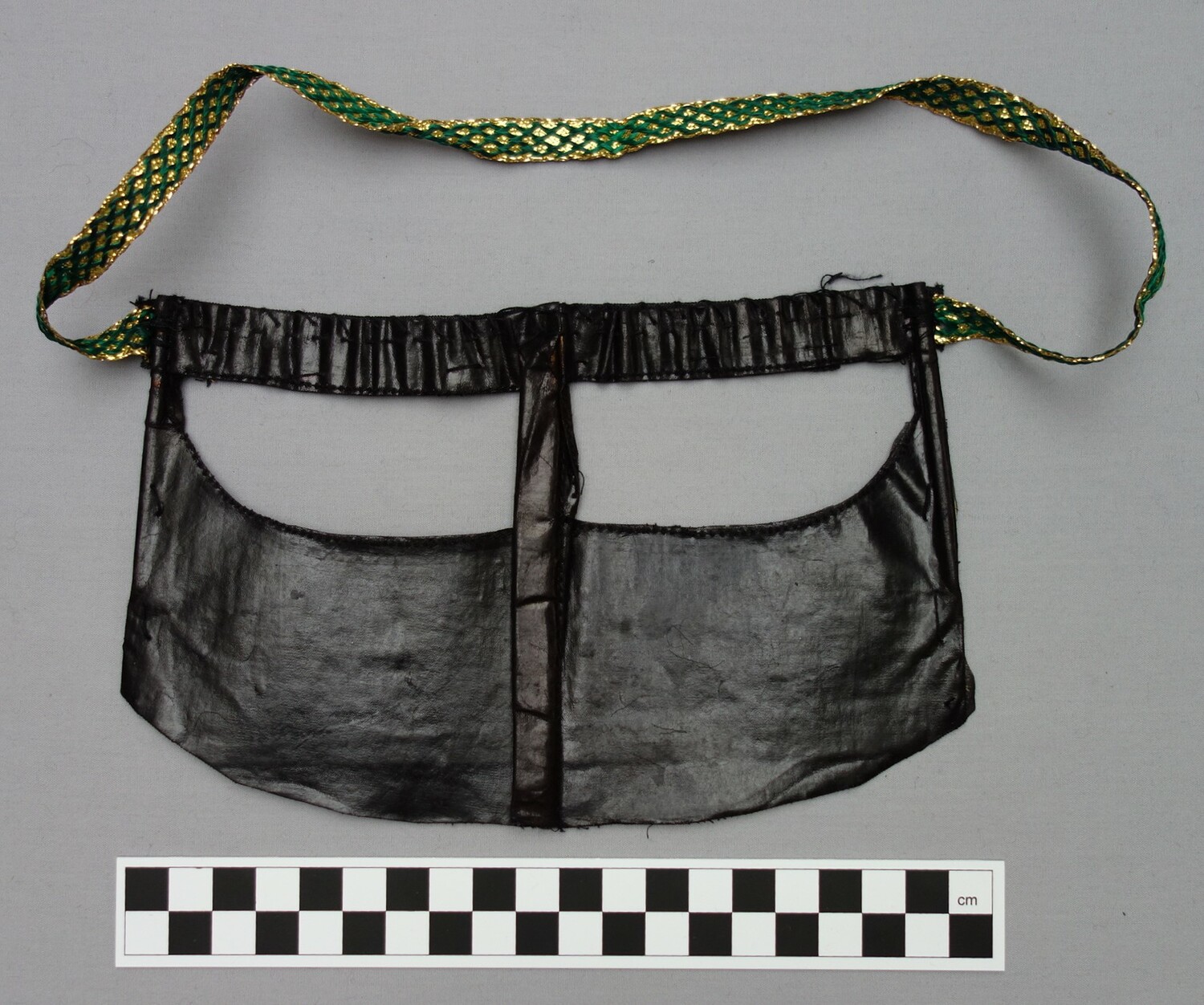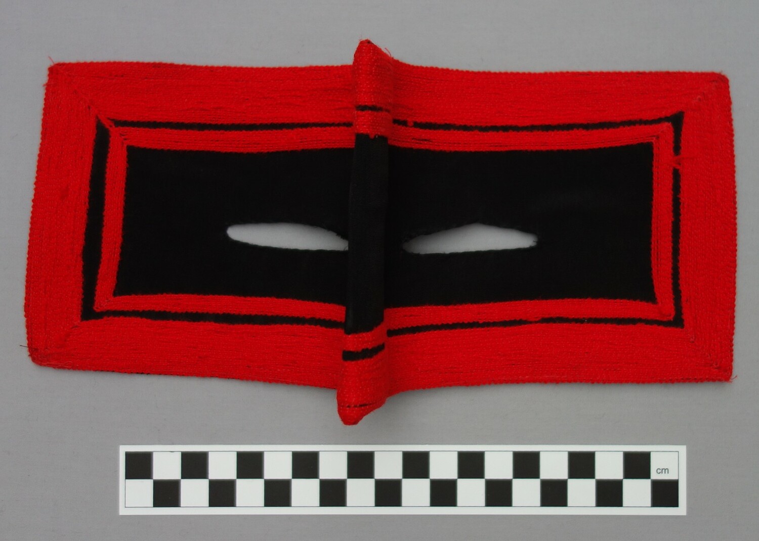 Perhaps one of the most widely known aspects of Bandar dress are the various types of face coverings. The type of face veil worn by a Bandar woman depends in the main on three factors, namely (a) her religious background (Sunni or Shi`ite), (b) her ethnic origins, and (c) where she lives. Many Shi`ite women in the Bandar region, for example, wear bright red, rectangular masks of the battulah construction that only covers the part of the face around the eyes, locally known as a burqa`, and decorated with various patterns. Originally these were hand worked, but nowadays most are decorated using machine embroidery. The colour and designs provide information as to which ethnic group the wearer derives from. Sunni women of Arab origin in the Bandar region sometimes wear a type of battulah. The main form of battulah that they use is squarish and rather long in shape. It is made out of black cotton or black velvet, or cotton cloth smeared with indigo and then polished until it adopts a golden hue. This golden coloured type of (Sunni) veil is similar to that worn in parts of Qatar, on the other side of the Persian Gulf.