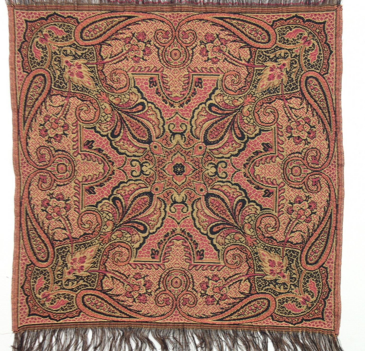 In addition, the motif began to appear on other garments, such as women’s bodices, jackets and skirts. The popularity of the paisley shawl started to decline in the 1870’s, following a change in fashion (especially the advent of the bustle, which meant that the shawls could not be draped to their best advantage), and at the same time shawls had become too ‘common’.