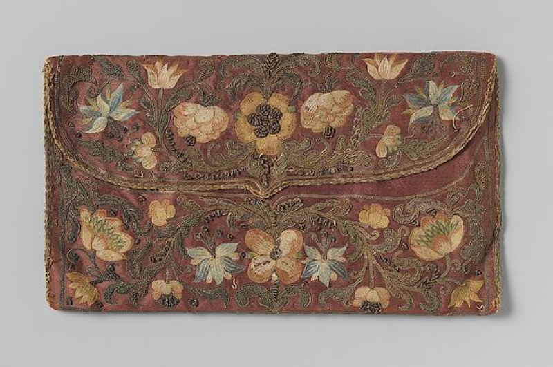 After his studies in Leiden University and an administrative function elsewhere, he was about thirty years old when he was appointed ambassador and sent to Constantinople, where his family had for a long time built up considerable interests. There he ordered two letter pouches, one of them being illustrated here. It is made of silk, floss silk, gold and silver thread and measures 21 x 11.5 cm. The reverse of the pouch has the embroidered text: Constantinopoli A: 1727.