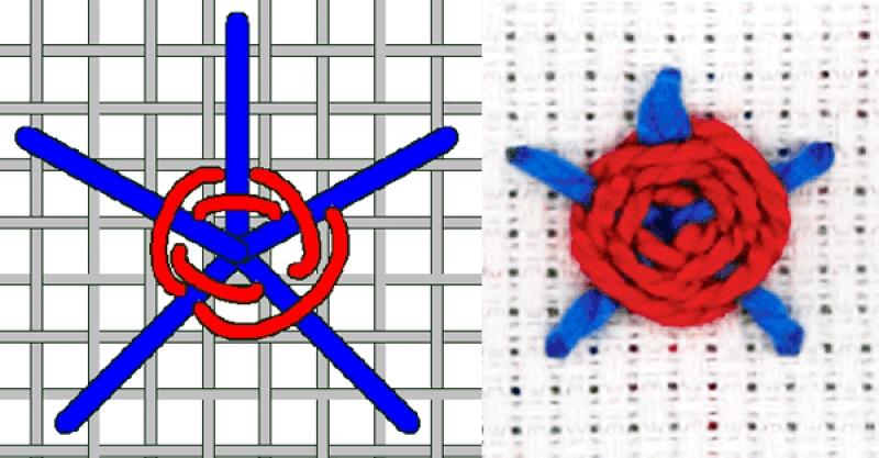 The spider's web is also known as the woven wheel, woven spot or woven spoke stitch.